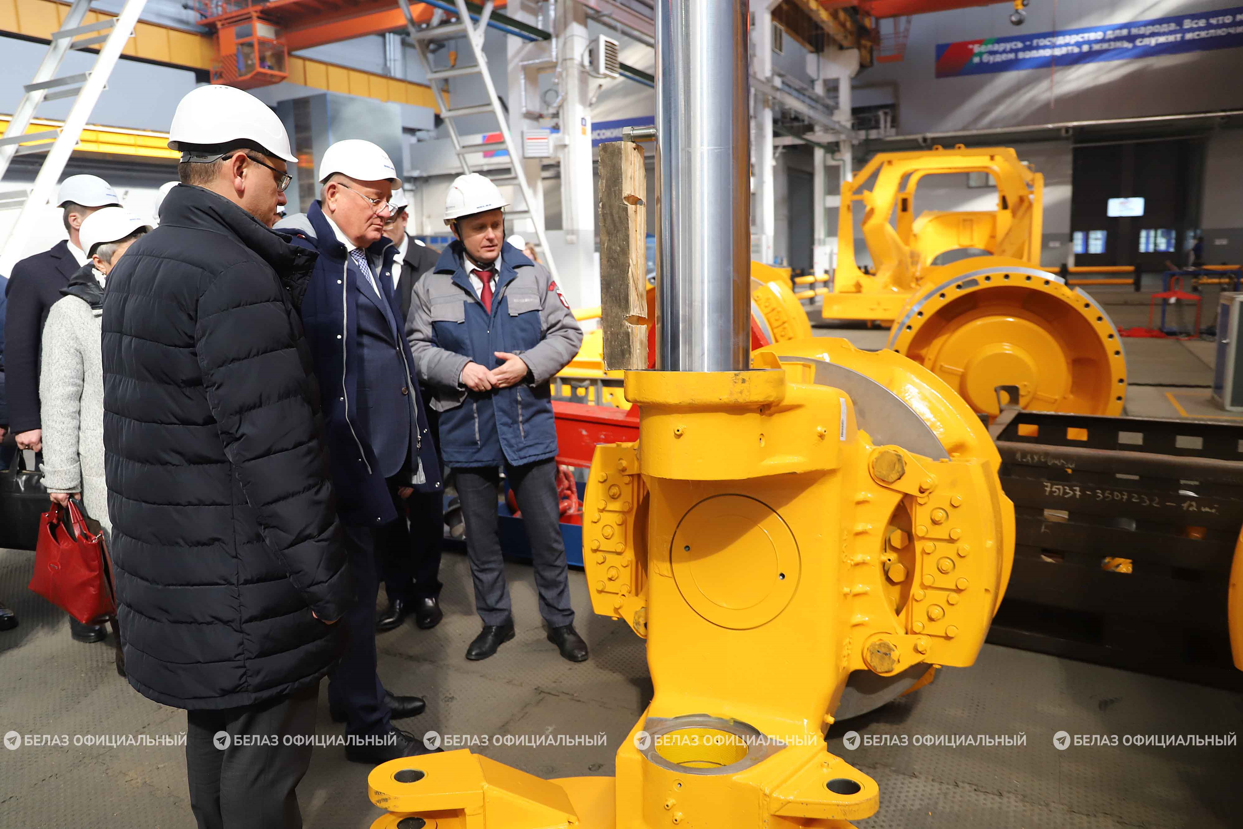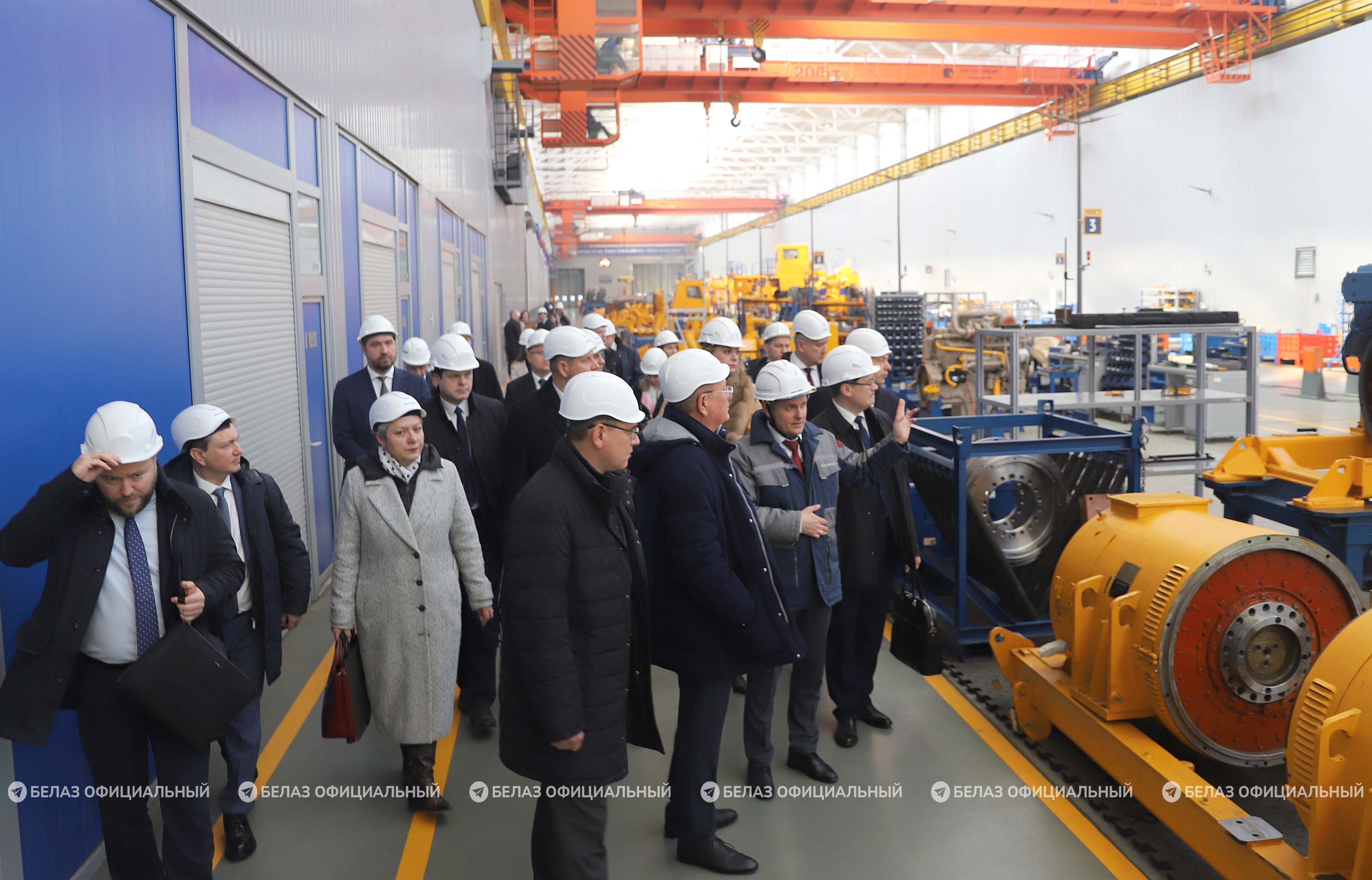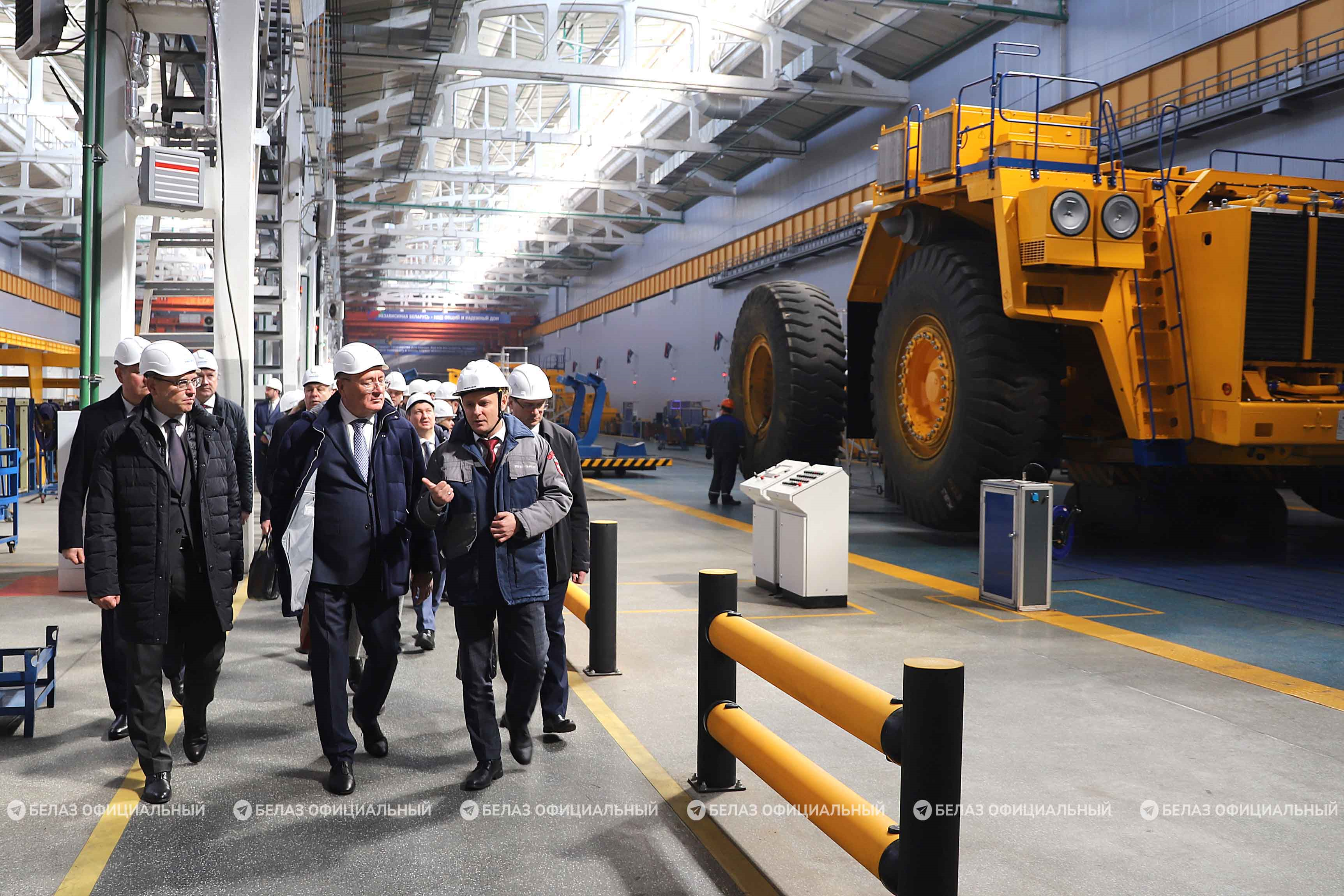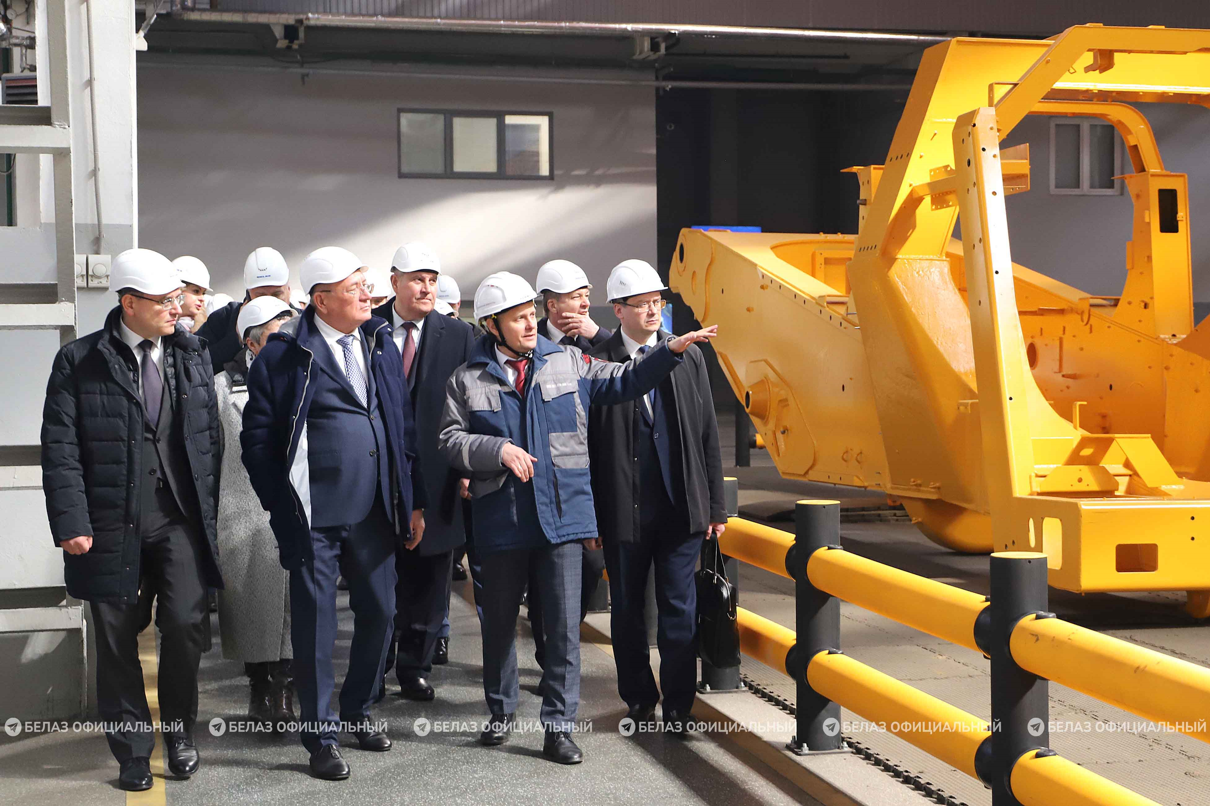 Российская делегация ознакомилась с ключевыми производственными площадками и технологическими возможностями БЕЛАЗа. Гостям рассказали об особенностях процесса конвейерной сборки карьерной техники, а также о техническом переоснащении предприятия.